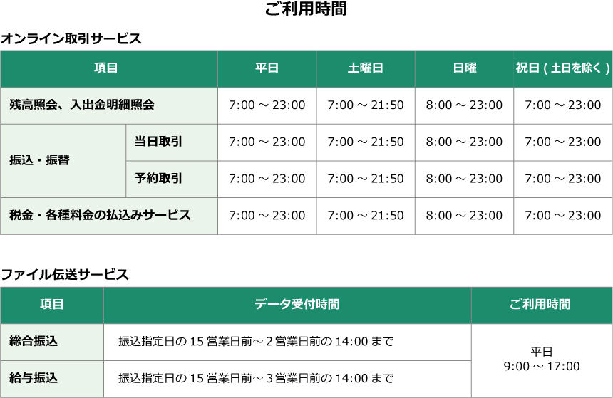 税金・各種料金の払込み(ペイジー)の利用時間を教えてください
