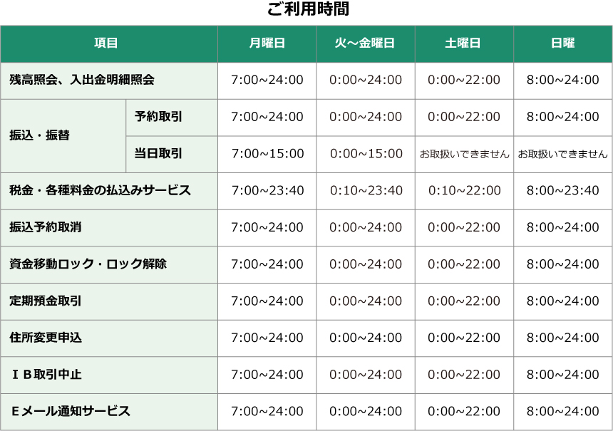 税金・各種料金の払込み(ペイジー)の利用時間を教えてください