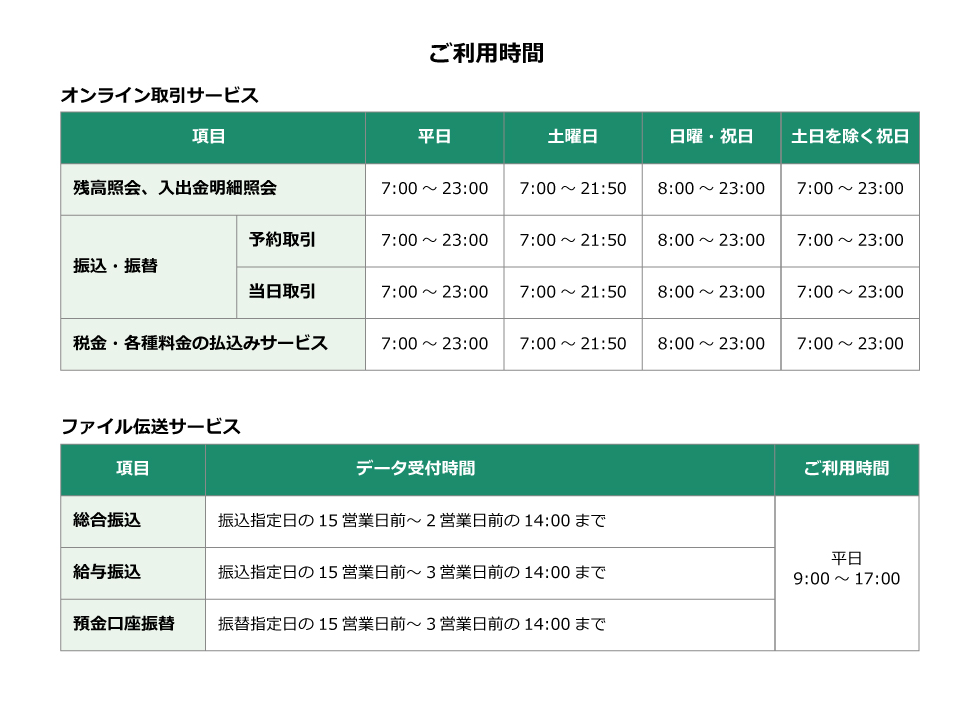当金庫の当日扱い時間につきましては、ご利用時間をご覧ください。