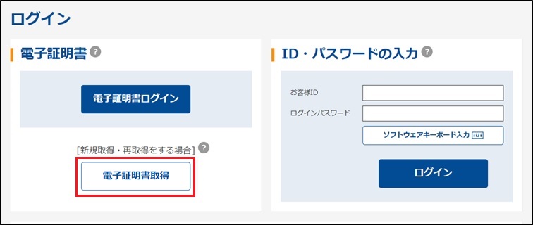 電子証明書取得開始の「取得」ボタンをクリック