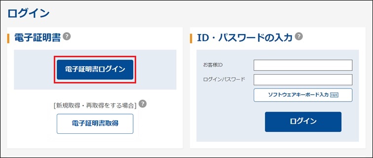 「電子証明書ログイン」をクリック
