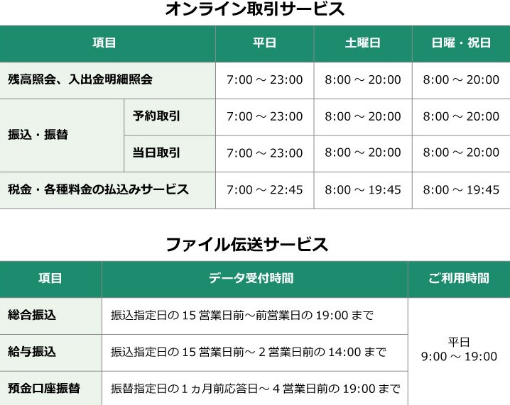 法人インターネットバンキングをご利用いただける時間につきましては「ご利用時間」をご覧ください。