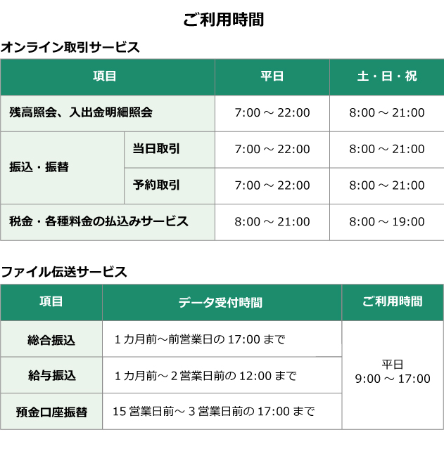 当金庫の当日扱い時間につきましては「ご利用時間」をご覧ください。