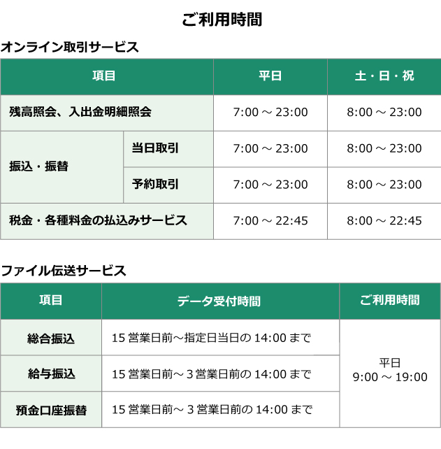 税金・各種料金の払込み(ペイジー)の利用時間を教えてください